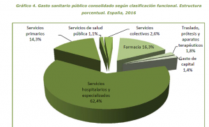 Con estas premisas llama la atención la reciente publicación del Ministerio de Sanidad y Consumo: Estadística de gasto sanitario público 2016: principales resultados. Editado en Marzo de este mismo año donde se refleja como los Servicios Hospitalarios y especializados siguen recibiendo más del 62% del presupuesto para Sanidad en nuestro país.